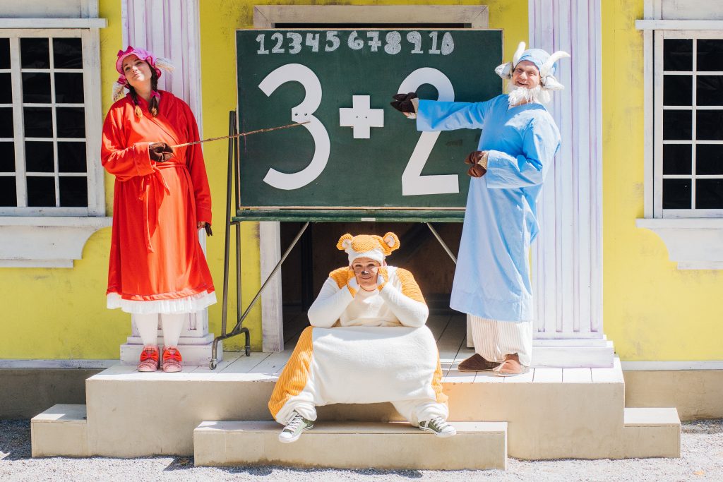 Lapsia myös aktivoidaan esityksessä mukavasti. Pieni yleisö oli innoissaan saadessaan huudella neuvoja hahmoille. Ei se ole siellä, kävele toiseen suuntaan, ei sinne vaan tonne! Kaksi plus kolme on viisi eikä yhdeksän!