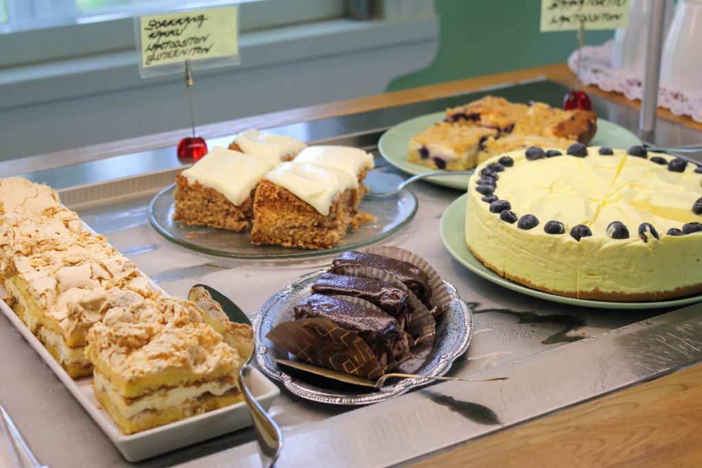 Vitriinin valikoima saa allergikon kiljumaan ilosta. Tarjolla on useita gluteenittomia tuotteita, sekä suolaista että makeaa. Kahvilan suosituin leivonnainen on gluteeniton marenkitorttu. Kaikki tuotteet ovat laktoosittomia ja osa maidottomia. Tarjolla on myös eri makuisia, itse tehtyjä vegaanisia jäädykkeitä. Isompaan nälkään voi hörppiä vaikka paksua savulohikeittoa.