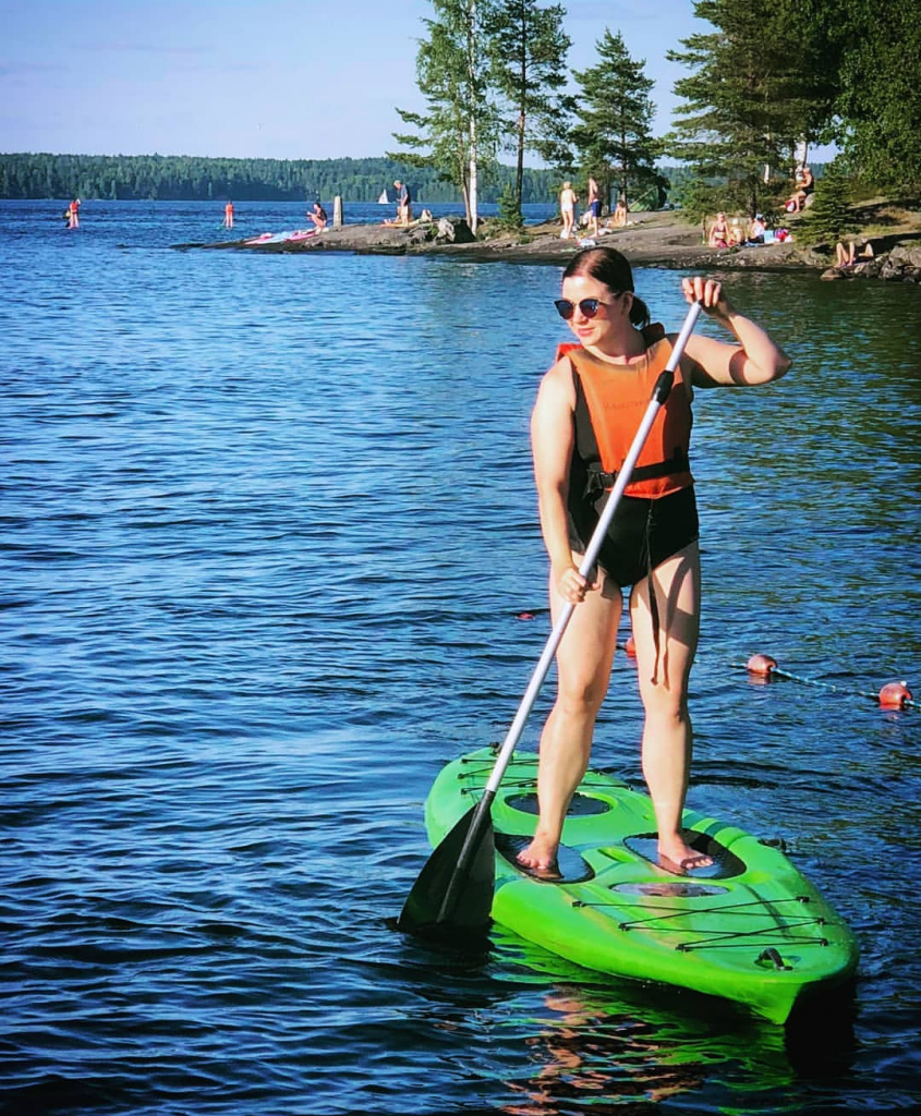 Olen haaveillut suppailusta monta vuotta, mutta en ole uskaltanut kokeilla. Järven selällä, pienen laudan päällä seisten kiitävä tyyppi näyttää niin absurdilta, että minun on ollut vaikea kuvitella itseäni laudan päälle. Uskaltauduin kuitenkin kokeilemaan, kun lähdimme kaverin kanssa toistemme tueksi.