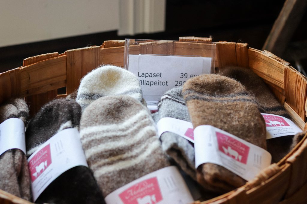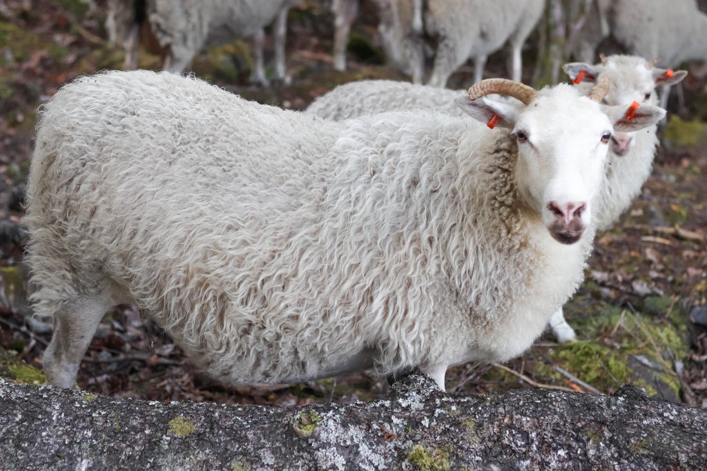 Vierailun vaikuttavinta antia oli lampaisiin tutustuminen. Ne hyväksyivät ensin lähelleen vain Sadun, joka tuntui muistavan lähes jokaisen eläimen nimeltä. Pikkuhiljaa lampaat rohkaistuivat, ja pääsimme moikkaamaan pörröpäitä. Lopuksi sain jo varoa, ettei Canonin hihna päätynyt parempiin suihin. Aholaidan lampailla on reilusti laidunnustilaa, ja eläimet pääsevät ulos joka päivä talvellakin. Kesällä lampaat ovat laitumella nelisen kuukautta. Ne huolehtivat luonnon monimuotoisuudesta, sillä vanhempi kasvillisuus pääsee esiin, kun lampaat rouskuttelevat ruohoa niiden päältä.