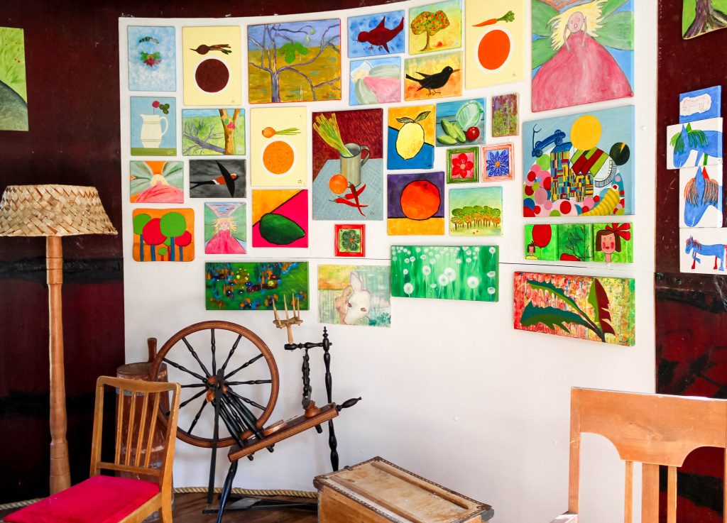 Pirjo on somistanut ympäristön hauskasti ja värikkäästi. Kun kuvasin tilalta Insta Storyja, tarkkasilmäiset kommentoivat, ”oletko Herra Heinämäen kuvauspaikalla”. Kyllä vain, kyseistä lastensarjaa on kuvattu näillä tienoilla. Vanhoilla tavaroilla somistetun pihan lisäksi ihailtavaa löytyy parvigalleriasta, jossa on vaihtuvia näyttelyitä.