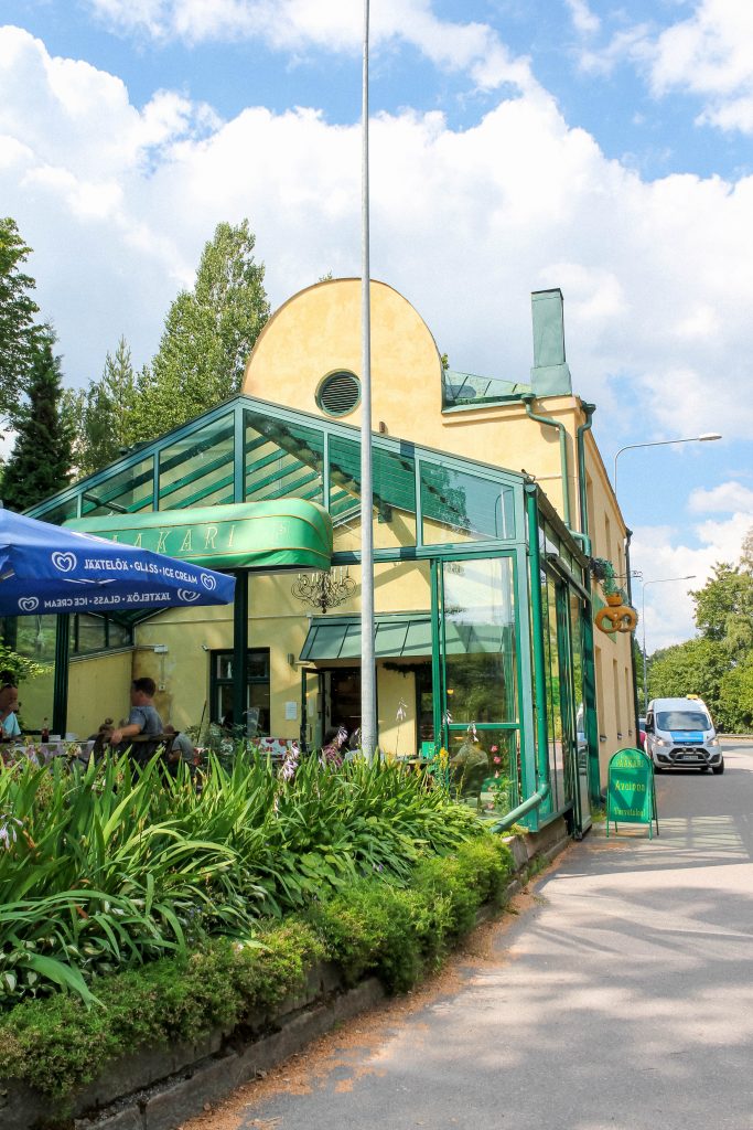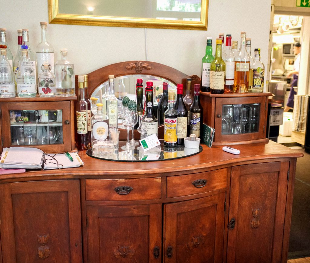 Huomioni kiinnittyi mahtavaan digestiivikaappiin. Asiakas saa kuulemma kurkistaa kaappiin, jos oma suosikki ei hahmotu listan perusteella. Alakerran kahvilakin on testaamisen arvoinen. Kaikki leivonnaiset, paitsi karjalanpiirakat, tehdään itse, ja toiveita kuunnellaan. Eräässä Facebookin kasvisruokaryhmässä vinkattiin hiljattain, että Paakari on leiponut pyynnöstä vihiksiä.