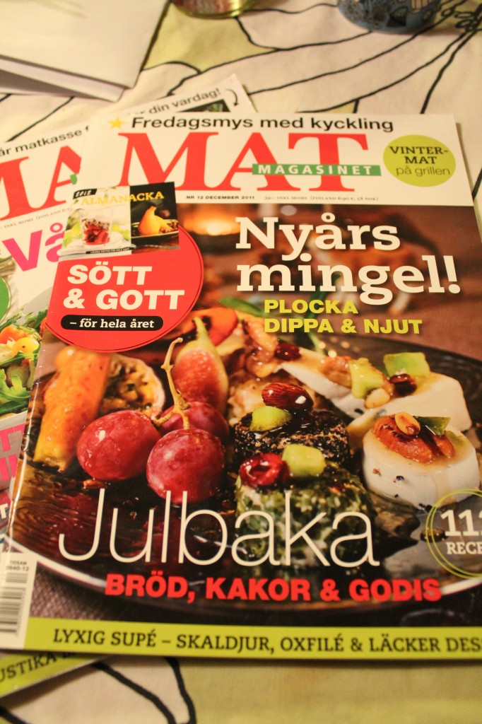 Löysin Ruotsista myös oivallisen ruokalehden. Mat Magasinet on täynnä helppoja ja nopeita reseptejä. Tämä on lehti uusavuttomille, kiireisille, laiskoille ja epävarmoille. Matissa on valmiiksi laadittuja ruokalistoja koko viikoksi. Idea on, että valmistamisessa kestää vain 20 minuuttia, ja eineksiä ja puolivalmisteita yhdistellään tuoreisiin raaka-aineisiin. Pastaa ei siis tarvitse leipoa alusta asti itse. Viikkoehdotuksen ohessa on valmis ruokalista, johon on merkattu kaikki tarvittavat raaka-aineet koko viikon ruokiin. Ei kun lappu talteen ja kauppaan. Ruoat ovat reseptien nopeudesta ja puolivalmisteiden käytöstä huolimatta mielenkiintoisia. Mausteita ja yrttejä käytetään rohkeasti ja raaka-aineita yhdistellään ennakkoluulottomasti. Ei siis vain spagettia ja jauhelihakastiketta, vaan esimerkiksi marokkolainen jauhelihapata banaanin kera.