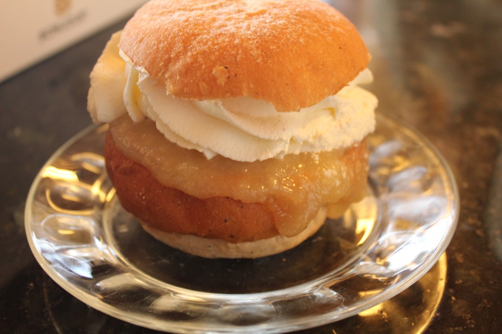 Lopuksi sananen jälkiruoasta. Ruotsalainen laskiaispulla on parempi kuin suomalainen, anteeksi epäisänmaallisuuteni. Ruotsissa jopa kaupan valmispulla tursuaa kermaa ja pehmeää, valuvaa mantelimassaa. Suomessa käytetään usein kivikovaa marsipaania, joka ei siis ole sama asia. Usein marsipaani vielä siivutetaan pullan väliin kuin makkara. Tämä pehnmeä ihanuus sai porukkamme mantelikammoiset muuttamaan mielensä.