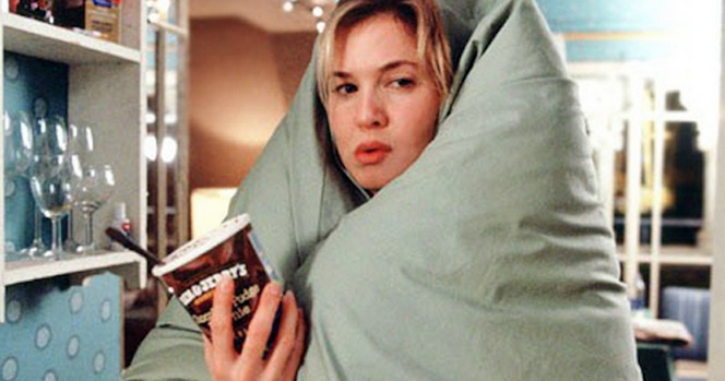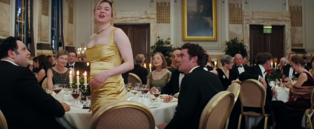 Yksi Bridget Jones -leffojen ja kirjojen kantava teema on Bridgetin paino. Muistan, miten paljon 2000-luvun alussa kohistiin siitä, että Renee Zellweger joutui lihottamaan itsensä Bridgetin roolia varten kokoon 40/42. Elokuvassa puhutaan Bridgetin painosta koko ajan. Hän pitää päiväkirjaa painostaan, lihoo ja laihtuu sydänsurujensa tahdissa. Myös muut ihmiset kommentoivat Bridgetin ulkomuotoa ahkerasti. Hänelle muistutetaan tuon tuosta, että hän on lihava.