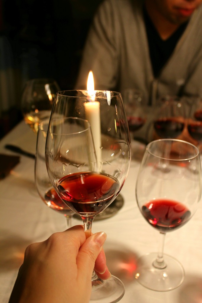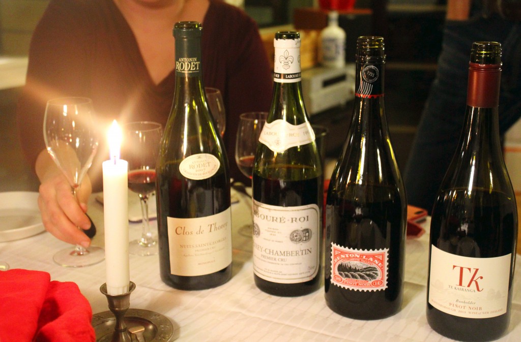 Alkusamppanjan jälkeen aloitimme Pinoteihin tutustumisen. Valikoimassa oli neljä keskenään hyvin erilaista viiniä, puolet vanhasta ja puolet uudesta maailmasta. Ensimmäinen tuttavuus oli vuoden 2007 Rodet Clos de Thorey Monopole Georgesista Ranskasta. Kirjoitimme viineistä muistiinpanoja, ja avauksen kohdalle olen kirjoittanut ”kellari, hiukan hometta?”. Yllätyin kuullessani, että kyseessä oli nuorehko viini, sillä tämä oli aivan eri maata kuin aikaisemmin maistelemani pinotit, todella multainen ja väriltään rusehtava. Marjoja sai oikein hakea mausta.