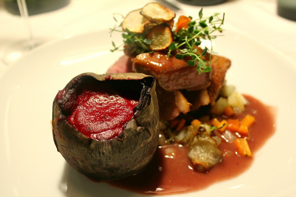 Tämän annoksen kanssa uuden maailman viinit pääsivät loistamaan. Punajuuressa oli sen verran makeutta ja annoksessa komponentteja, että viinien mausteisuus ja täyteläisyys antoivat ruoalle hyvää vastinetta.