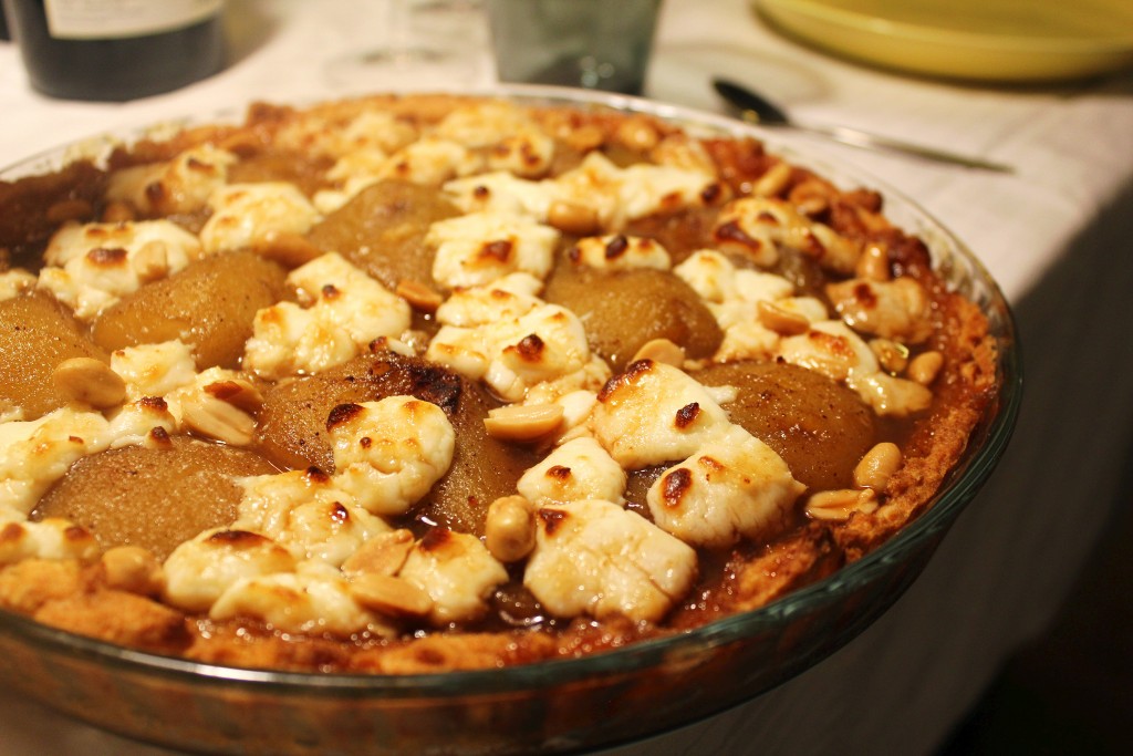 Näiden elämysten jälkeen olin ihan että apua, miten minun jälkiruokapiiraani pärjää tässä seuraassa. Tein suolaisenmakean päärynä-vuohenjuustopiiraan, jonka resepti löytyy täältä. No eipä kukaan kehdannut ainakaan ääneen valittaa. 🙂
