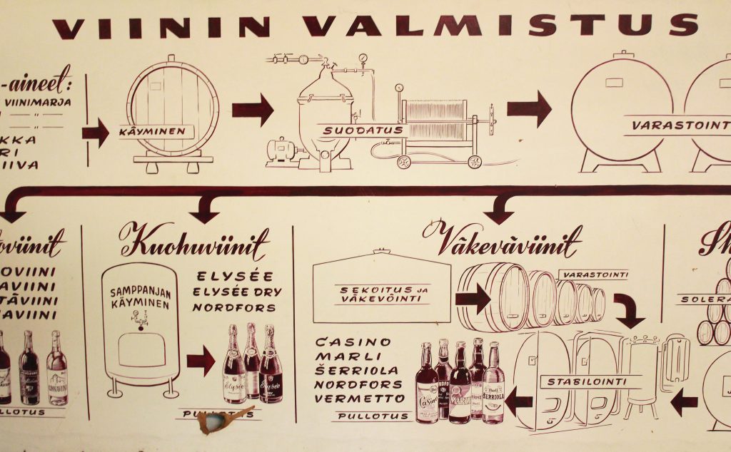 Itselleni tuli yllätyksenä, kuinka monet legendaariset juomat täällä valmistuvat: esimerkiksi Tapio-viina, Minttu-likööri ja monet väkevät viinit, jotka saivat teinimuistot virtaamaan vuolaina. Tuota minä olen tintannut taskulämpöisenä Koskipuistossa tapahtumien yönä! Ja tuota ja tuota ja tuota!