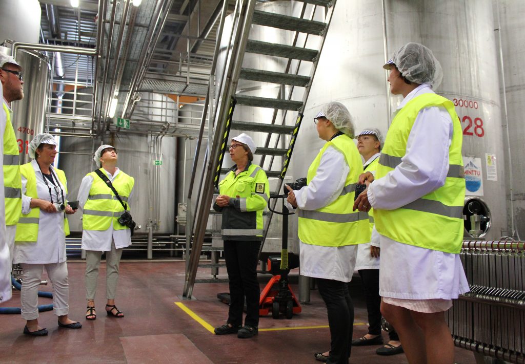 Tehtaassa leijui vieno, makea tuoksu, joka oli toisilla käytävällä marjaisempi, toisilla minttuisempi – etenkin 60 000 litraa vetävän Minttu-tankin edessä. Tämän luvun lisäksi mieleeni jäi sellainen nippelitieto, että esimerkiksi Lumene jatkojalostaa osan Pernod Ricardin marjajuomien valmistuksessa käytetyistä marjojen siemenistä kosmetiikkaansa. Kierrätysmartta sisälläni hykerteli.