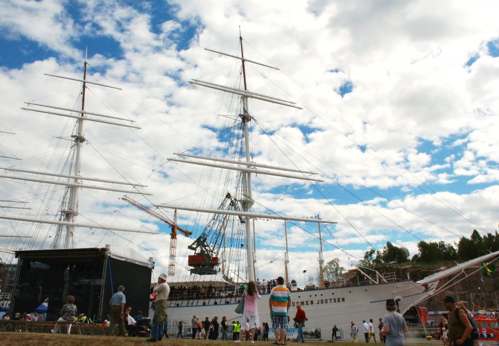 Ainutlaatuista Turun tapahtumassa on se, että suuretkin laivat voivat purjehtia Aurajokea pitkin aivan kaupungin sydämeen. Turun satama ei ole samanlainen erillinen, hieman ankea ja tehdasmainen alue kuin monissa muissa merenrantakaupungeissa. Satamasta löytyy esimerkiksi tapahtumakeskus Forum Marinum, jossa vietimme iltapäivän.