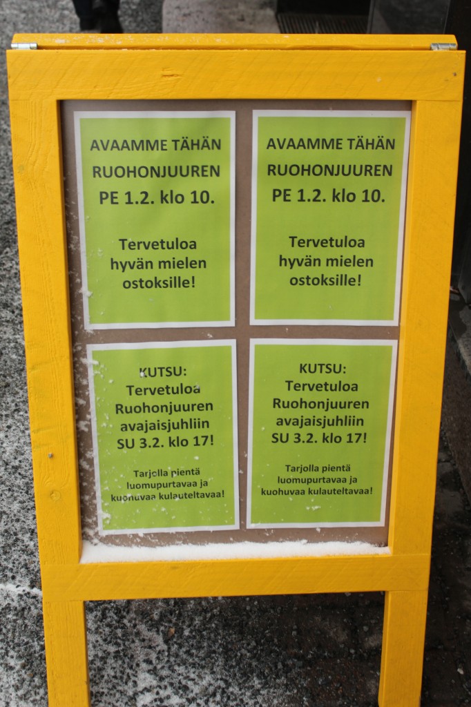 Saapa nähdä, löytyykö Ruohonjuuresta luomulihaa, tuskin. Ymmärtääkseni ketju perustettiin aikoinaan tiukasti kasvissyönti-ideologian ympärille. Ehkä vegemarkkinat ovat jo niin suuret, että markettimaisen Ruohonjuuren perustaminen on kannattavaa. Ja vaikka ei kasvissyöjä olisikaan, tämä tuo lisää kaivattuja vaihtoehtoja K- ja S-ryhmän hypermarketeille.