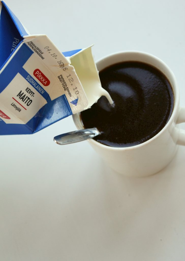 Vanilja-aromi oli esanssinen, ja sain nieltyä kahvia lopulta vain yhden siemauksen. Juon kahvini mieluummin kahvina ja kulautan öljyä vaikka suoraan pullosta, mutta ei näin. Meitsillä on vielä tuo maustamaton pussi jäljellä eli räpylää pystyyn, jos joku haluaa kokeilla.