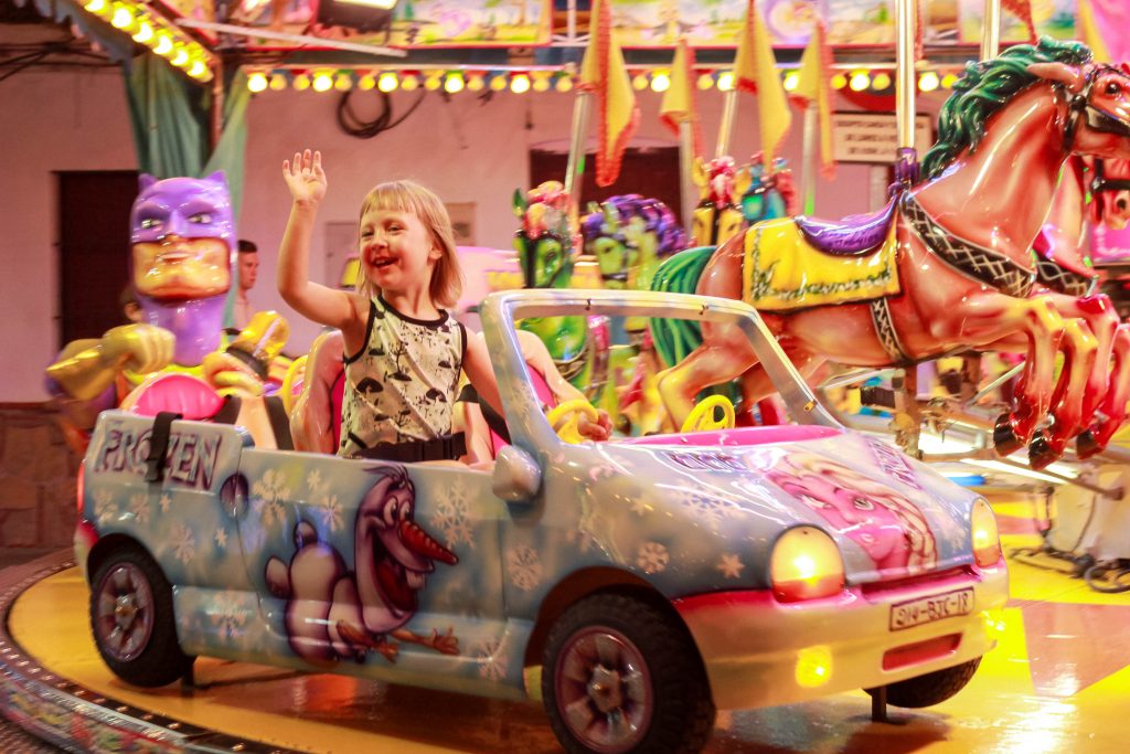 Pippaloista aiheutui hieman meluhaittaa, mutta saimme silti nukuttua. Typylle ei myöskään tarvinnut järjestää erityistä ohjelmaa, sillä hän pääsi joka ilta karuselliin. Kylän laidalla olevalle aukiolle pystytettiin myös esiintymislava, jolla paikallisen tanssikoulun oppilaat esittelivät taitojaan. Wou! Silmät kostuivat, kun pikkutanssijat kipusivat lavalle minikokoisissa flamencopuvuissaan. He tanssivat mielettömän hienosti.