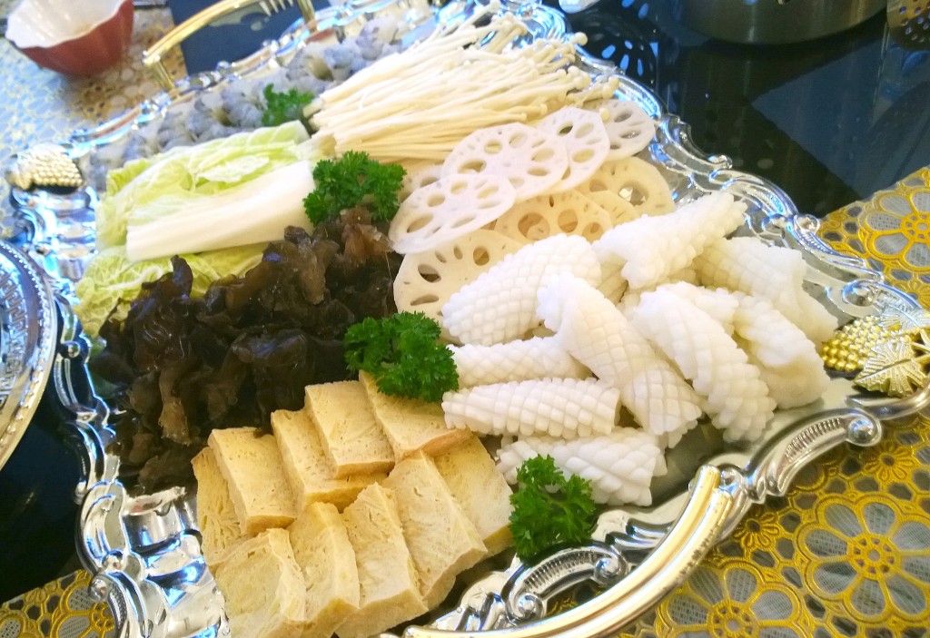 Testasin ensin Yitongin hot potin perheeni kanssa. Hot pot maksaa 24 euro per henkilö. Lapsen aterian hintaa en muista, mutta se oli halpa, olisikohan ollut euron per ikävuosi. Täytevaihtoehtoja oli niin paljon, että olimme pyörällä päästämme. Valitsimme lopulta lajitelman F, joka sisältää naudanlihaa, jättikatkarapuja, kalmaria, Enokitake-sieniä, lootuksenjuurta, tofua, kiinankaalia ja mustasientä.