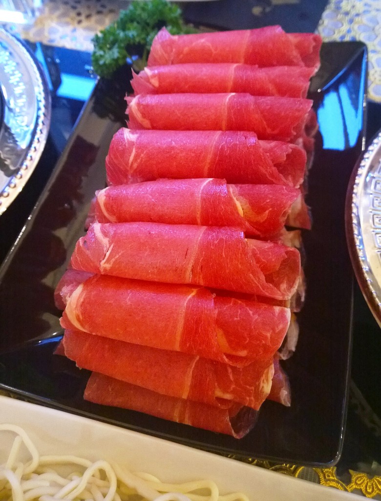 Kaikki täytteet tulivat suoraan pakasteesta. Kiinalaisten sienien ja äyriäisten kohdalla ymmärrän tämän, mutta jäistä naudanlihaa en tajunnut. Ohuet jäiset siivut pysyivät toki kauniilla rullilla, mutta Shanghaissa ja Pekingissä syömäni hot potit tarjottiin aina tuoreen lihan kera.