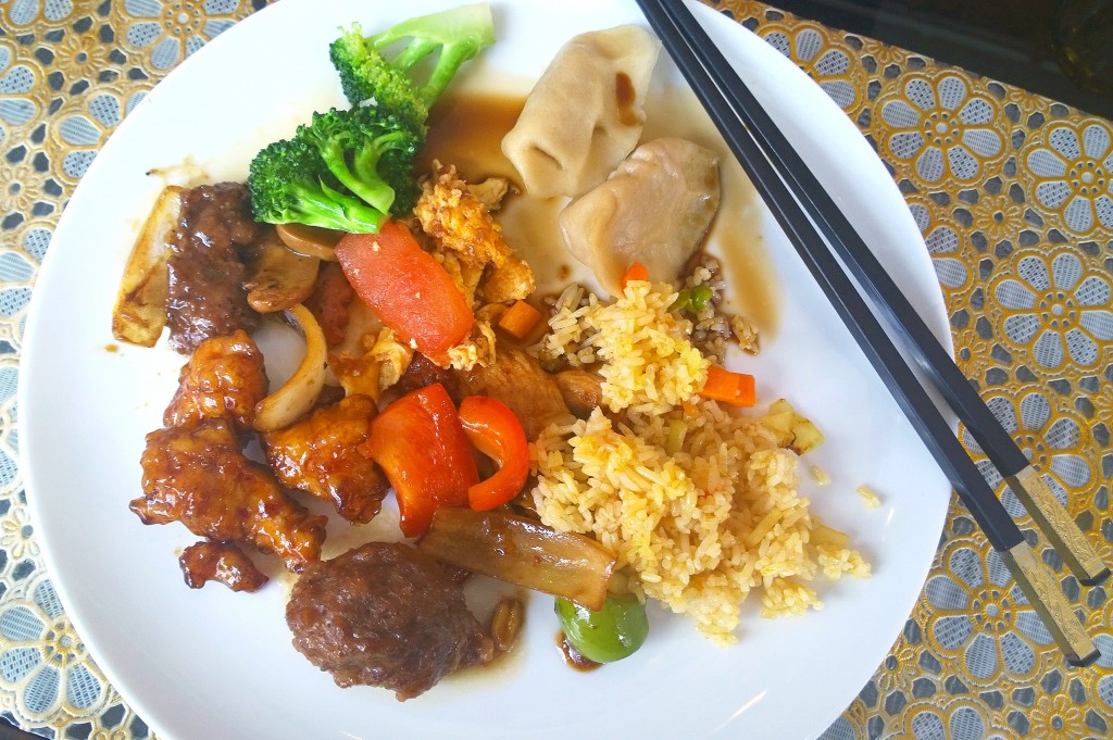 Buffet oli 70-prosenttisesti kovin samanlainen kuin muissa yleisetnisissä. Siis kevätrullia, keitettyä ja paistettua riisiä, kana- ja lihakastiketta, keittoa ja sushia.