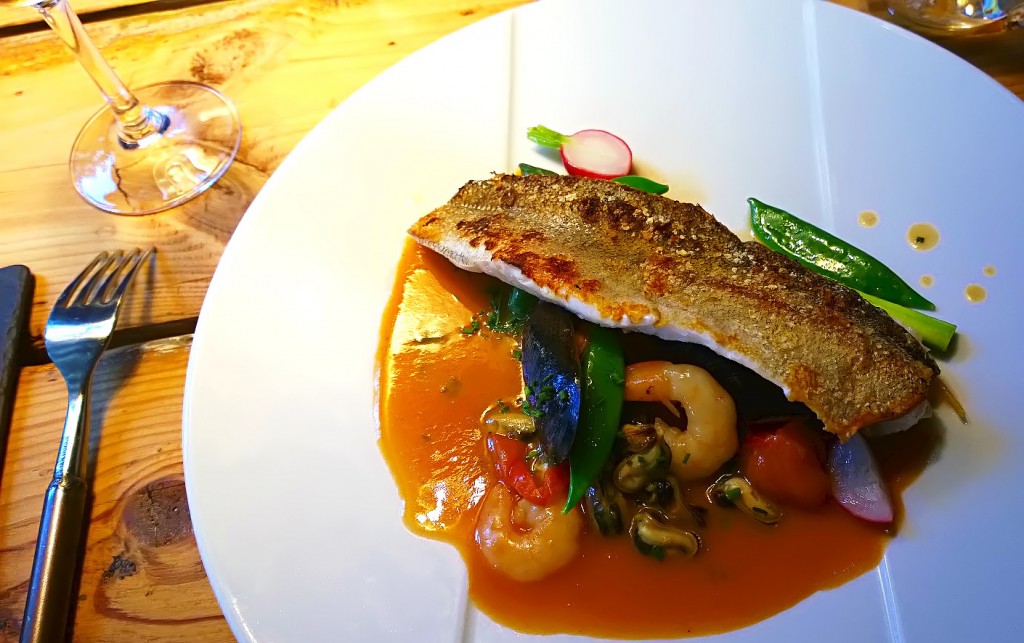 Kuha-annokseni oli valtava. En ole varmaan koskaan saanut ravintolassa näin suurta kala-annosta. Lautasella oli kokonainen suuri kuhafile ja todella runsaasti kastiketta. Kuvittelin, että Bouillabaisse-kastike olisi jonkinlainen tyylitelty versio klassikkokeitosta. Kastiketta oli kuitenkin niin paljon, että kala oikeastaan tarjoiltiin keitossa. Bouillabaissen ravut olivat tuoreita ja napakoita, ja kala hyvin paistettua. Kastike oli kuitenkin aika laimeaa ja vetistä, mikä vei ajatukset pussikeittoon. Kastike olisi toiminut, jos se olisi keitetty paremmin kasaan, maustettu rohkeammin ja sitä olisi ollut vain sopiva sipaus.