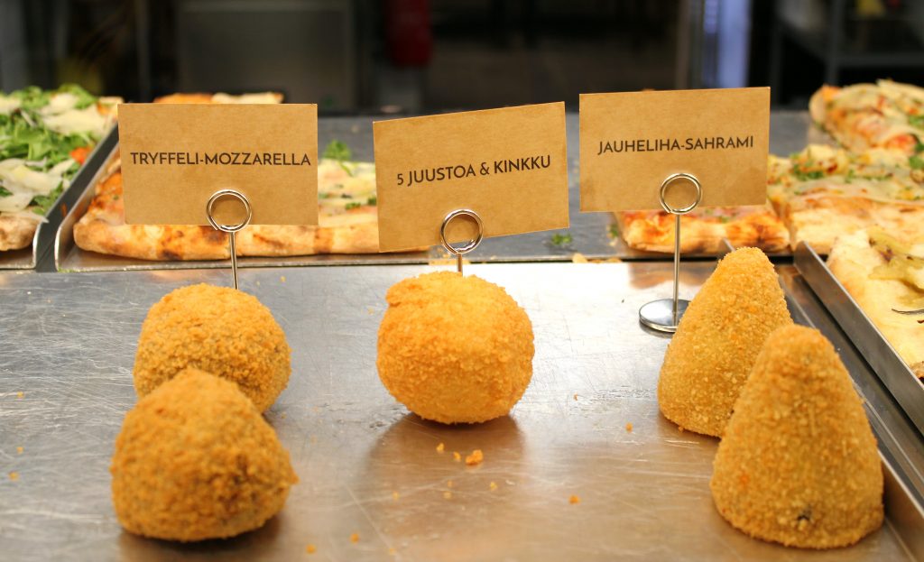 Arancinit olivat yhtä ihania kuin aina. Lapset pitivät kinkkutäytteestä, ja minä olen ihastunut vegaanisiin palleroihin. Niiden sisus on ihanan kermainen ja pehmeä, vaikka vegaanisissa arancineissa ei ole juustoa.