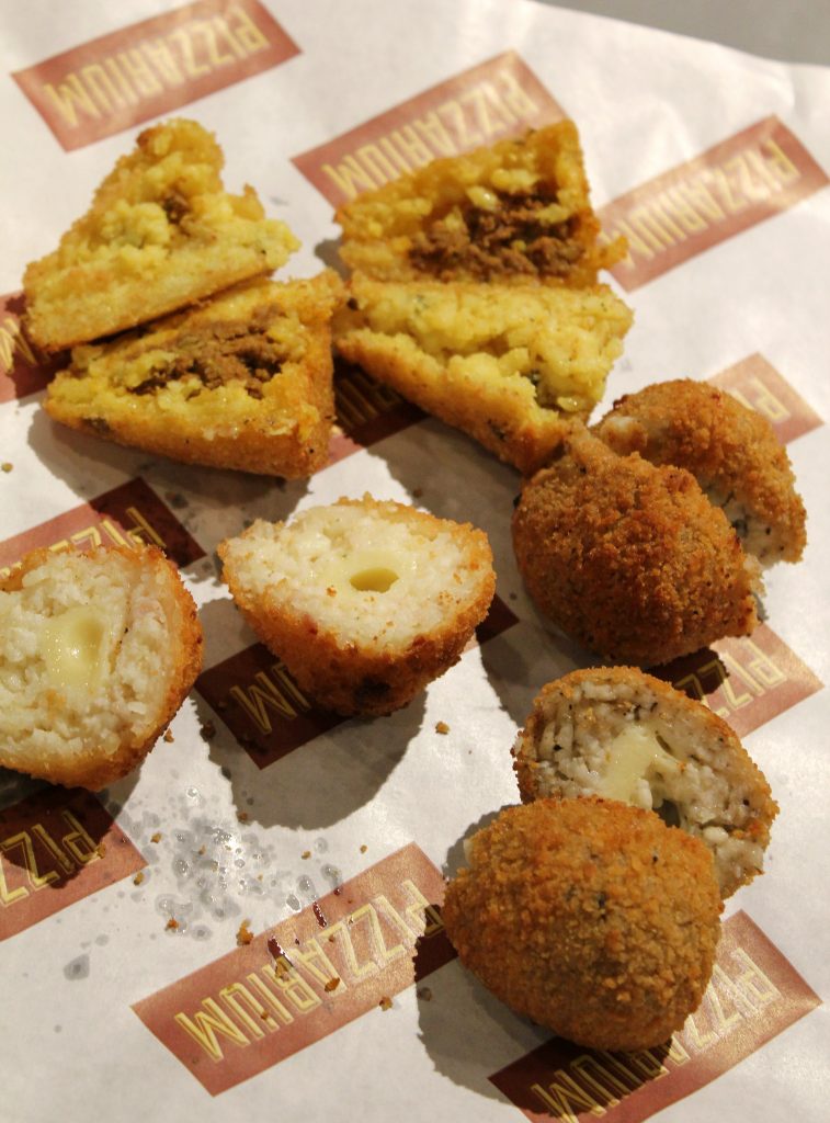 Suolaisten pizzojen lisäksi Pizzariumista saa makeaa Nutella-pizzaa (joka on oikeasti hyvää, vaikka olin skeptinen), salaatteja ja jumalaisia friteerattuja arancini-riisipalloja. Sekä pizzoja että arancineja on saatavilla vege- ja vegaanitäytteillä. Vegaanipizzoissa ei ole juustoa, vaan marinara-tyyliin tomaattikastiketta ja kasvistäytteitä.
