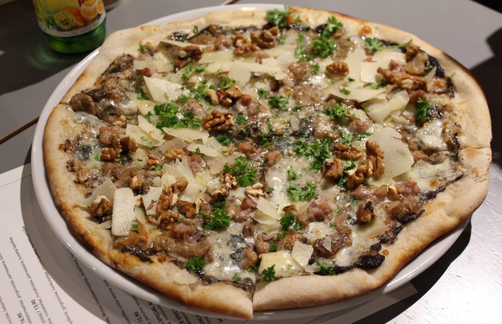 Pizzojen täytteet olivat todella laadukkaita. Siis sellaisia, joita ei todellakaan ole viiden euron pikapizzerioissa, esimerkiksi kurpitsakreemiä, saksanpähkinöitä, lohta, gorgonzolaa, tryffelitahnaa ja artisokansydämiä.