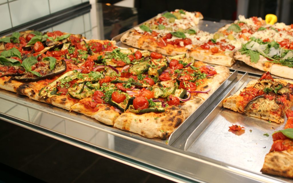 Mielestäni parhaiten toimivat simppelimmät vegaanipizzat sekä pekoni- ja salamipizza. Kaikki syömämme pizzat olivat silti tuhat kertaa parempia kuin suurimmassa osassa suomalaisia pizzapaikkoja.