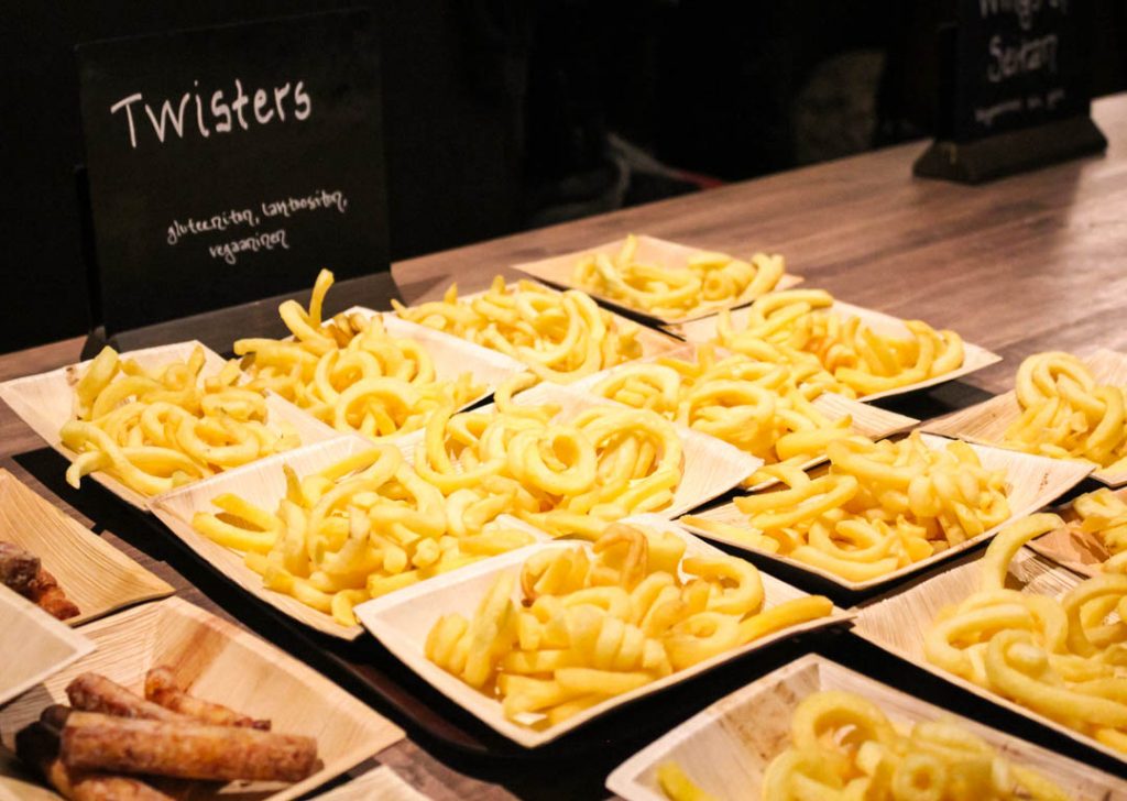 Tilaisuudessa tarjottiin myös ei-vegaanisia, mutta gluteenittomia halloumiranskalaisia. En ole ihan varma, ovatko nämä tulossa pysyvästi listalle, mutta oli hauska päästä testaamaan hehkutetut hipsterherkut.