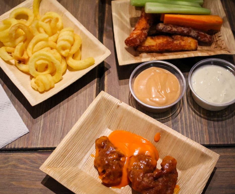 Kuten kuvista näkyy, emme syöneet epämääräisiä lötköjä paloja, kuten vähän pelkäsin. Söimme siipiä, dippejä ja kierreperunoita. Tavallisten dippien lisäksi tarjolla oli useampaa vegaanista dippiä, jotka ovat myös tulossa Siipiweikkojen listalle. Vegesiipiä ja dippejä pitäisi olla tarjolla jossain vaiheessa ensi vuoden alkua.