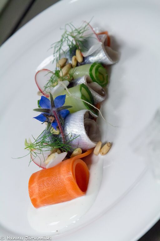Lupasin useammalle ihmiselle Berthan ravintelivaltauksen reseptejä, joten täältä pesee. Otetaan ensimmäiseksi käsittelyyn alkuruoka eli limemarinoidut silakat.