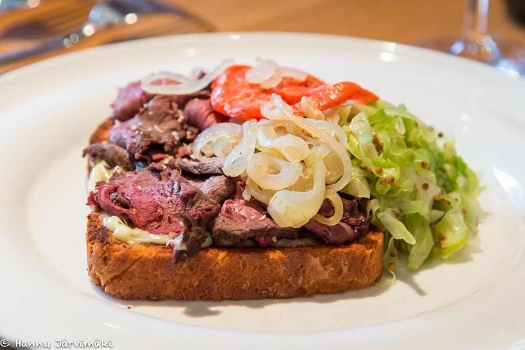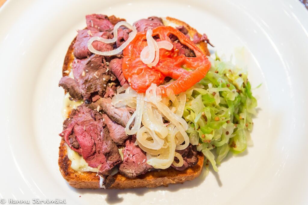 Berthassa savustimme lihan ammattilaissysteemein. Kokeilen tämänkin vielä kotikeittiössä elokuussa vaikka savustuspussilla ja raportoin tulokset. Yksinkertaisimmillaan voit paistaa naudan- tai hevosenpaistia tai filettä voissa roseeksi ja siivuttaa sen ohuiksi viipaleiksi leivän päälle.
