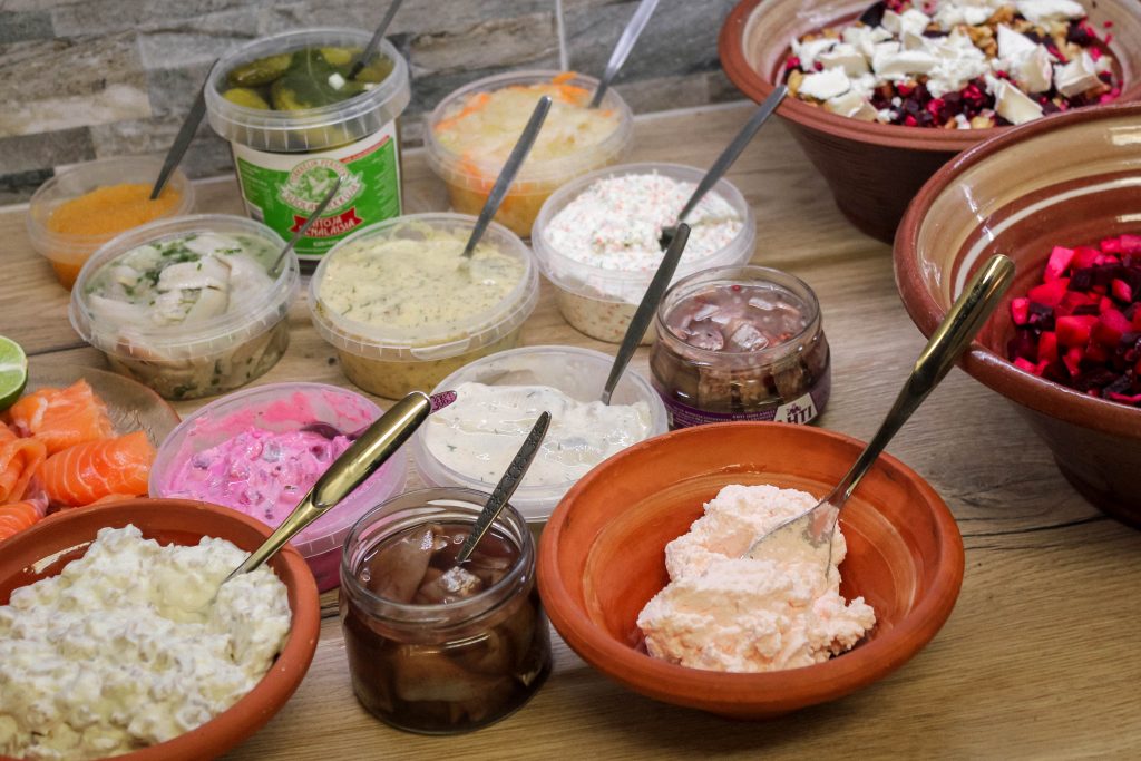 Joulupöydän tähtiä olivat taas Nygrenin kalat ja erilaiset suolaiset ja hapokkaat salaatit. Kinkun sijaan söimme itse pyydetystä peurasta tehtyä stifadoa eli jouluisesti maustettua, kreikkalaista lihapataa.