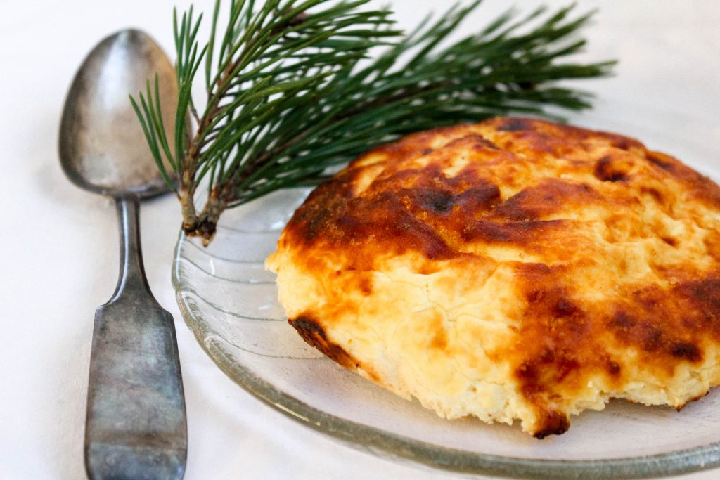 KOLMASKIN VINKKI VIELÄ, JOO JOO SE RESEPTI TULEE KYLLÄ: Juuston ei tarvitse olla täydellisen sileä. Kuten edellä sanoinkin, et tarvitse juustomuottia. Siivilä, iso kippo ja harso/pari suodatinpaperipussia riittävät. Juusto saa uunissa kauniin paistopinnan, joka peittää kuhmut.