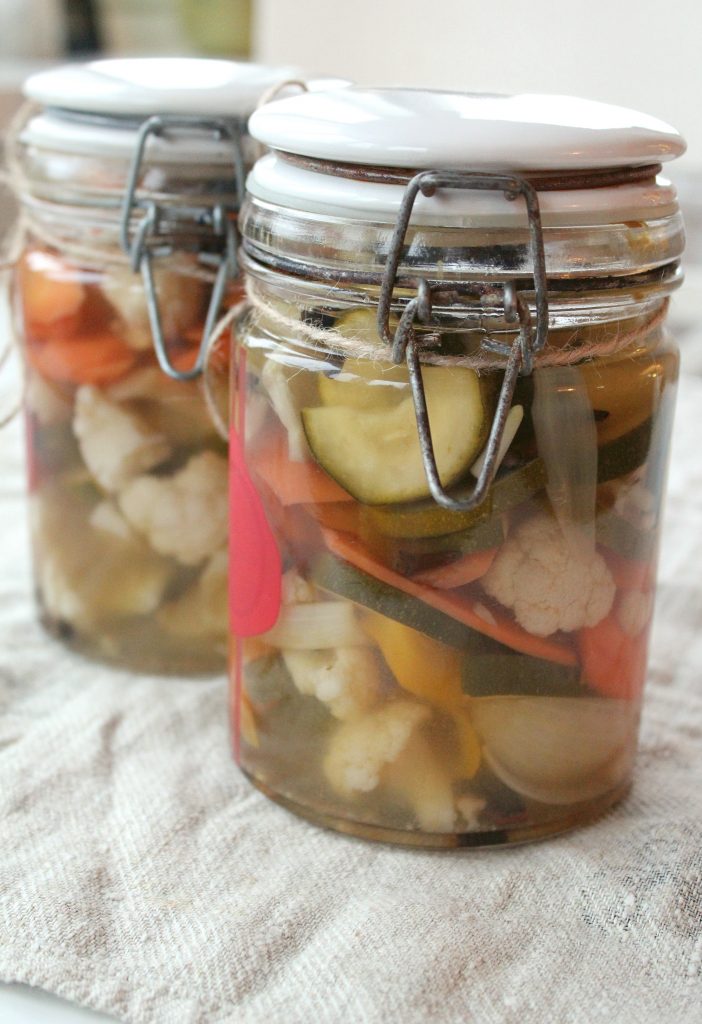 Marinoituja kasviksia on muuten kiva tehdä pikkupurkkeihin joululahjaksi ystäville iänikuisen suklaan ja glögin sijaan. Olemme tehneet aika monena vuotena myös sinappia, sillä kaveripiirissämme on enemmän suolaisen kuin makean ystäviä.