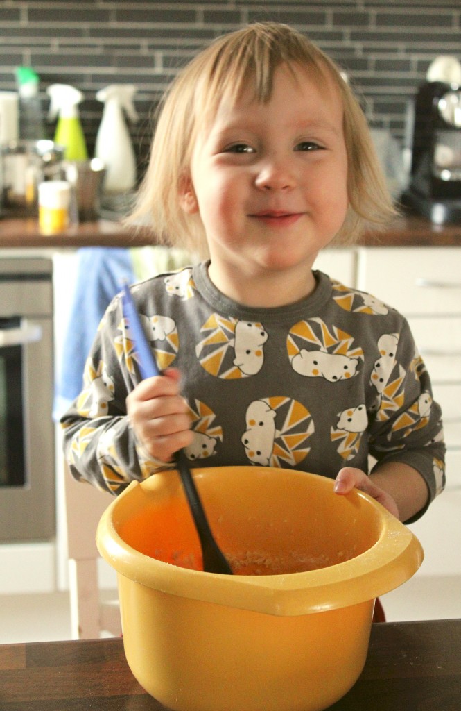 Lapsesta kyllä huomaa, että hän on elänyt koko pienen elämänsä bloggausharrastukseni vaikutuspiirissä. Tyyppi oli ohjeistanut mummolassa, että makkarakeittoa ei saa syödä ennen kuin annoksesta on otettu kuva. Hän haluaa olla ruoanlaitossa aina mukana, ja mestarin toiminta pitää ikuistaa kuviin, jos yhteiskuntarauhan halutaan säilyvän.