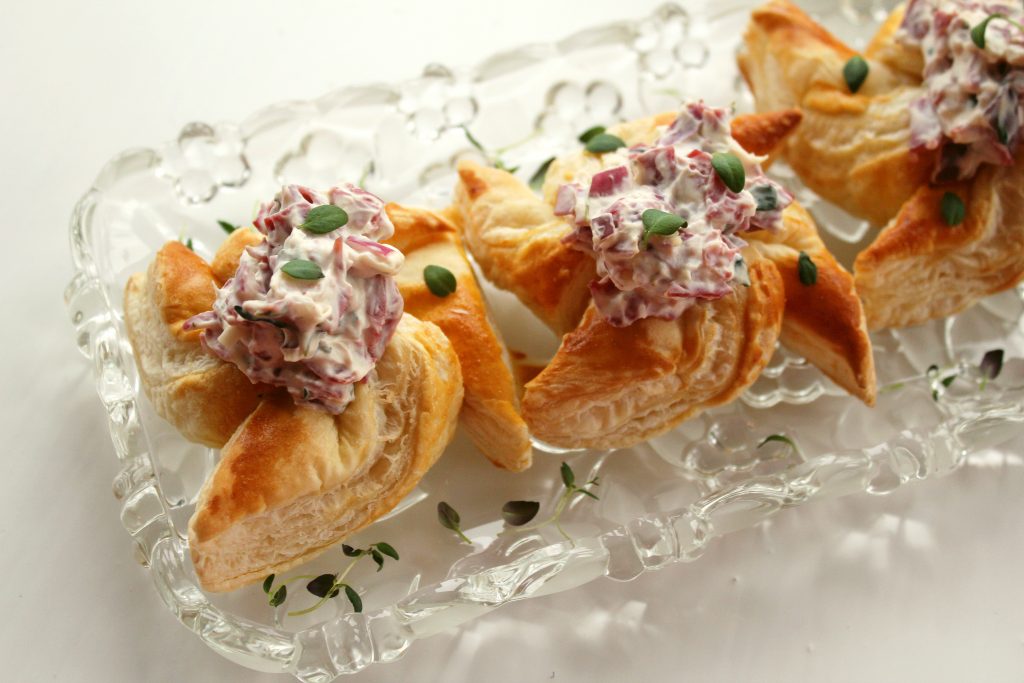 Lisäsin mausteeksi myös hieman Dijon-sinappia. Muuten resepti on ennallaan: tuorejuustoa, savuhärkää, timjamia, suolaa, pippuria. Ostin ohueksi siivutettua savuhärkäleikettä, jota saa perusmarketista. Voit käyttää myös poroa tai hevosta, mutta nämä lihat ovat puolet kalliimpia kuin härkä, eikä niitä löydä kaikista pikkukaupoista.