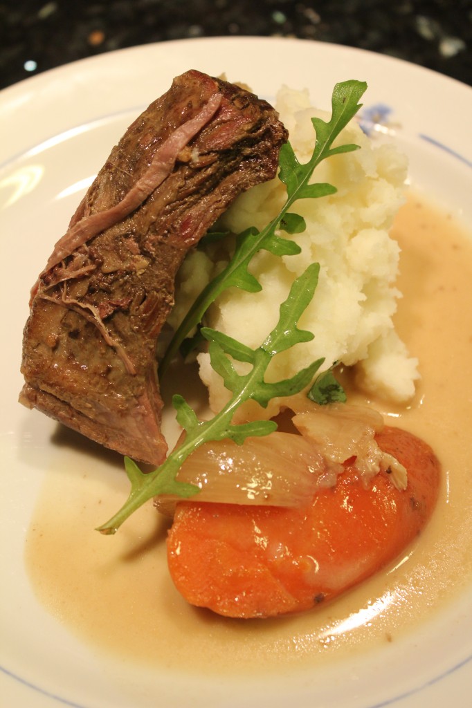Ylikypsä hirvipaisti on yhtä helppo valmistaa kuin filekin. Hirveen jätimme hiukan rasvaa, eikä lihaan tullut kitkerää makua. Kirjoitin jo aikaisemmin ylikypsän paistin valmistamisesta. Perusperiaate kaikkien ylikypsien paistien valmistamisessa on lihatyypistä riippumatta sama: nopea esipaisto pannulla, liha-kasvisliemen valmistaminen, ja paisti liemineen uuniin. Ainekset: