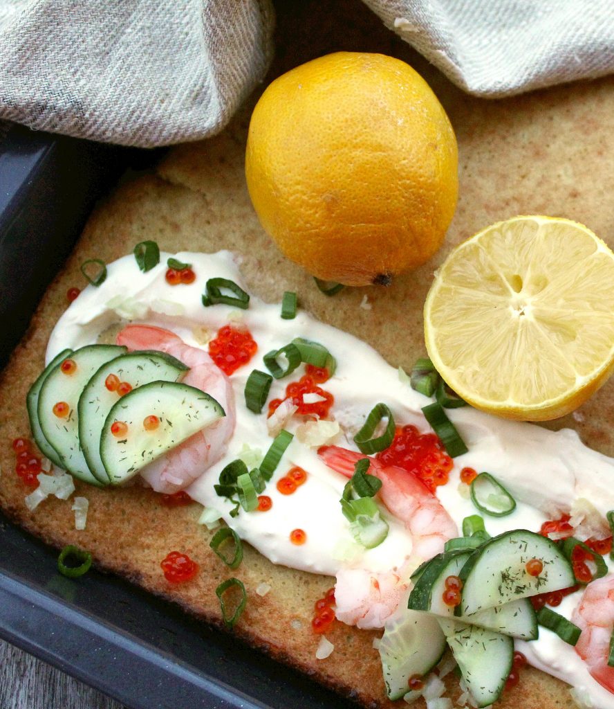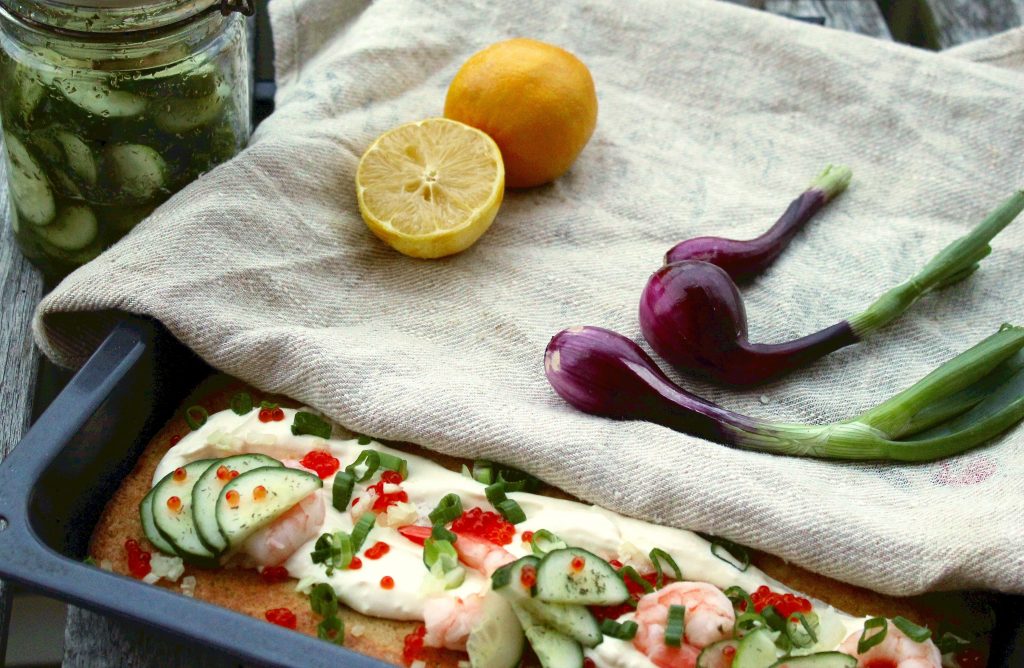 Käryherkkänä ihmisenä tykkään valmistaa kotona ruoan uunissa. Lettujen sijaan teen usein pannukakkua, ja blinitkin olen korvannut monesti pannariversiolla. Halusin tähän blinipannukakkuun kesän parhaat palat: raikkauden ja kotimaiset kasvikset. Tajusin myös, että tämähän on laiskalle ihmiselle oiva tapa viettää rapujuhlia.
