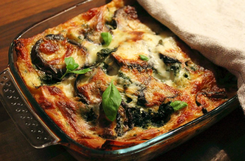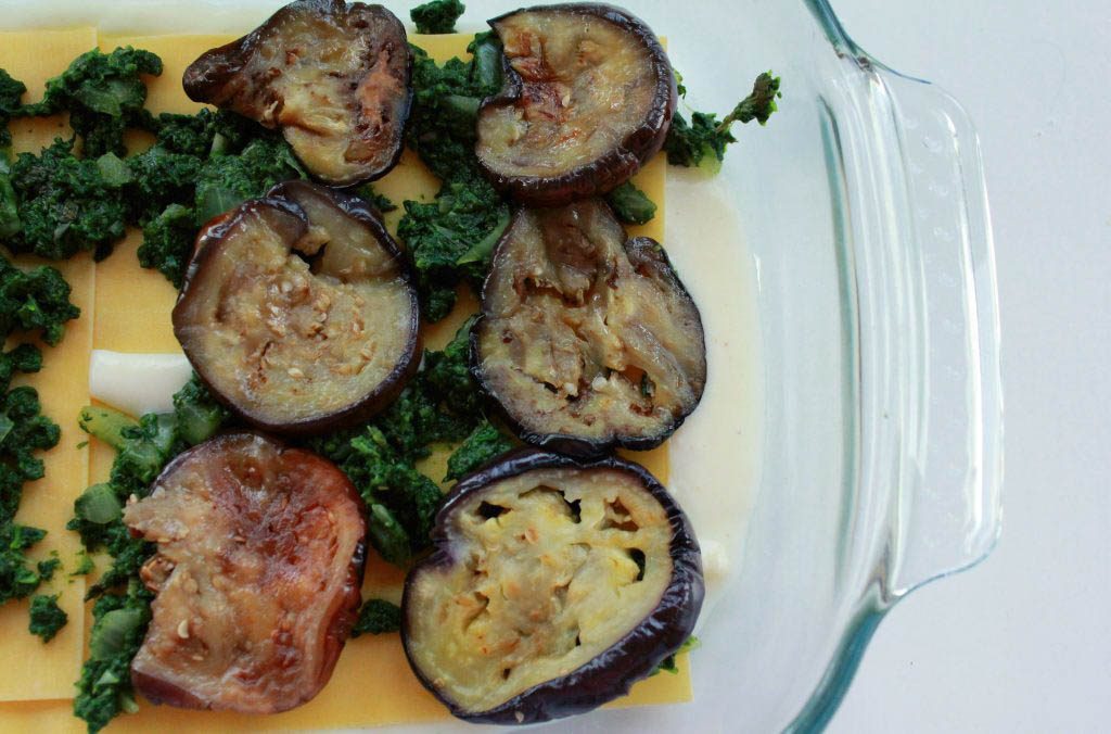 - Kokoa lopuksi lasagne. Laita pohjalle kevyesti ja tasaisesti valkokastiketta ja sen pälle lasagnelevyjä. Pane levyjen päälle pinaattikastiketta, munakoisoviipaleita ja valkokastiketta. Jatka kokoamista. Viimeisen kerroksen päälle pitäisi tulla jompaa kumpaa kastiketta, jotta lasagnelevyt eivät pala. Viipaloi mozzarella ja aseta viipaleet viimeisen kastikekerroksen päälle.