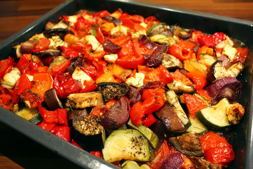 Ja hei ihmiset, syökää niitä tomaatteja (kotimaisia), kesäkurpitsaa ja paprikaa nyt. Vetäkää napa täyteen ja tankatkaa vitamiineja, koska sesonki on parhaimmillaan, eivätkä kotimaiset kasvikset rasita kukkaroa. Teimme yksi ilta valtavan pellillisen uunissa haudutettuja kasviksia ja fetaa, ja söimme vihanneksia sellaisenaan ja pastan kera monta päivää. Etenkin tomaatit ovat nyt niin maukkaita, että niiden aromia ei kannata peittää turhan monimutkaisilla sooseilla. Tomaatin oma liemi on niin mehevä, että kun sitä hiukkasen korostaa mausteilla ja pehmentää sokerilla, ei tarvita kikkailua.