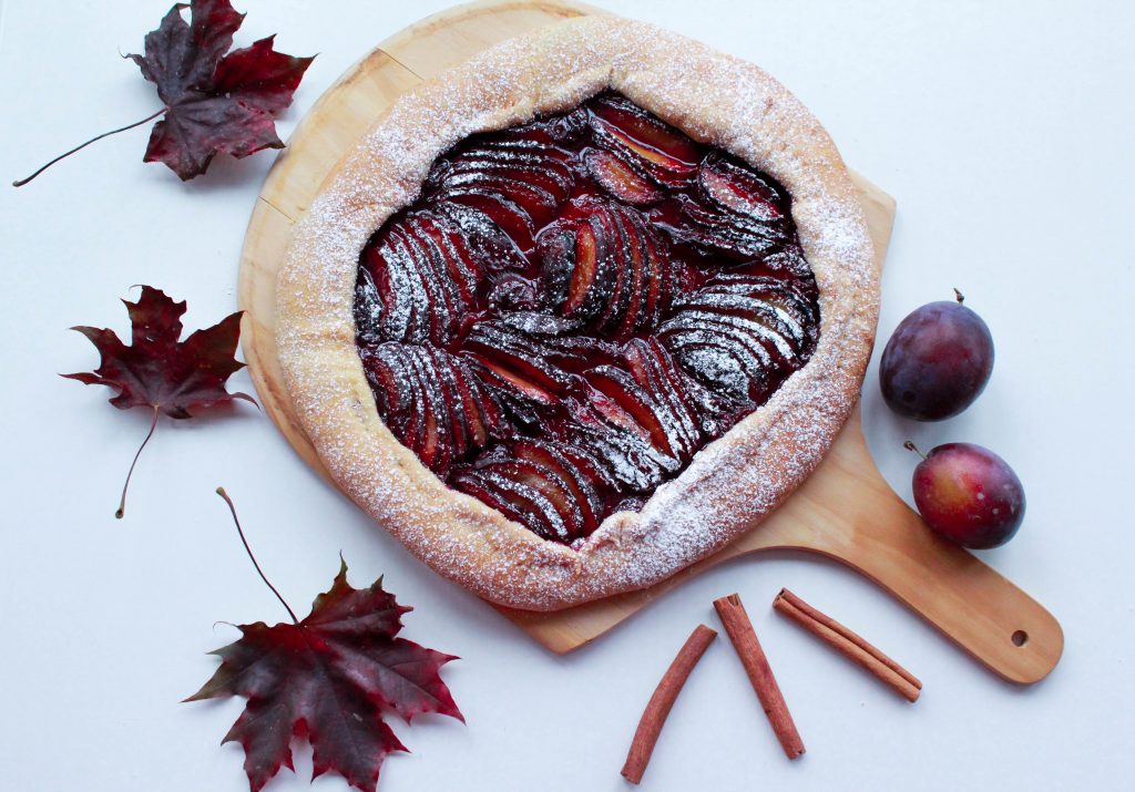 Rustiikkisen taikinataskun voi täyttää suolaisella tai makealla. Käytä marjoja tai makeita hedelmiä, kuten kirsikoita, luumuja, persimoneja, mustikkaa tai punaherukkaa. Kun sihtaat jäähtyneen piiraan päälle tomusokeria, lopputulos muistuttaa talvista metsää.