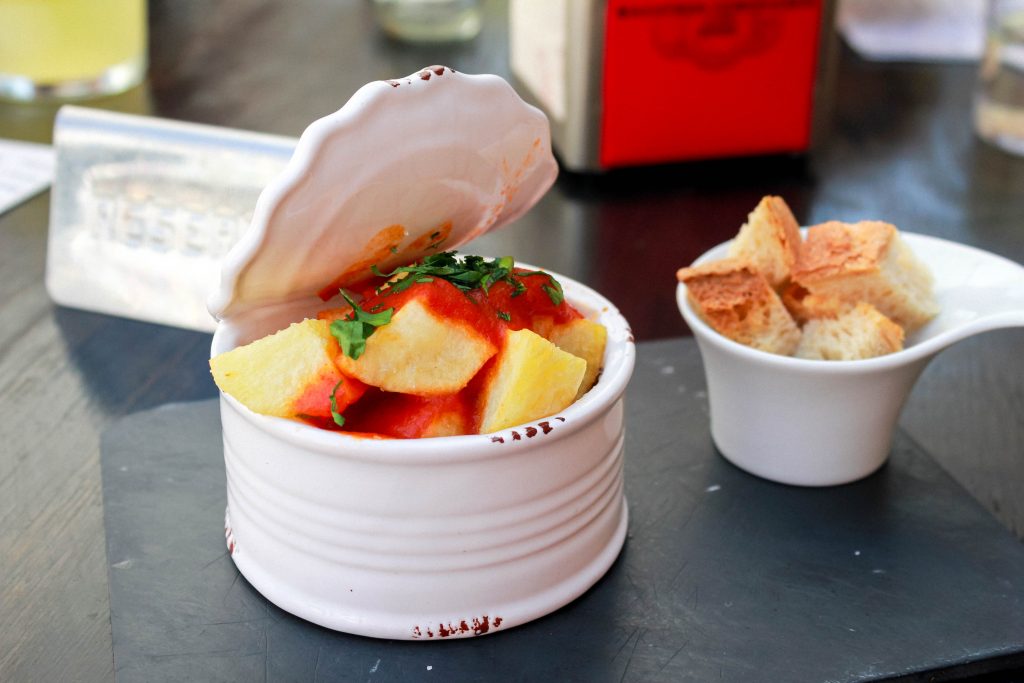 Ruoka puhukoon kuitenkin puolestaan. Tapakset olivat edullisia, reilut viisi euroa kappale. Seurueessamme oli neljä aikuista ja kaksi lasta. Tilasimme pöydän täyteen ja söimme hienon illallisravintolan tasoisen lounaan yhteensä noin 60 eurolla.