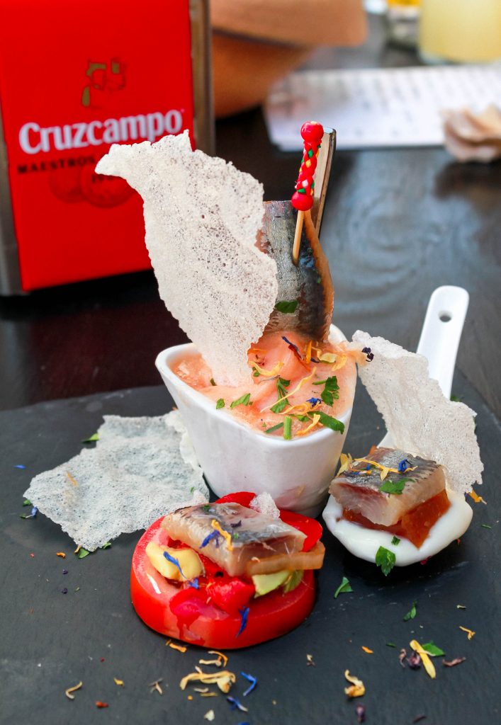 Listalla oli gastrohenkisiä annoksia, kuten miniburgereita ja patatas bravas -perunoita, mutta myös silkkaa fine diningia, kuten hersyvän ohueksi leikattua sahramimustekalaa ja ja kauniita äyriäislajitelmia. Annokset olivat yksiä kauneimmista syömistäni tapaksista, ja olen kuitenkin käynyt Espanjassa jo aika monta kertaa.