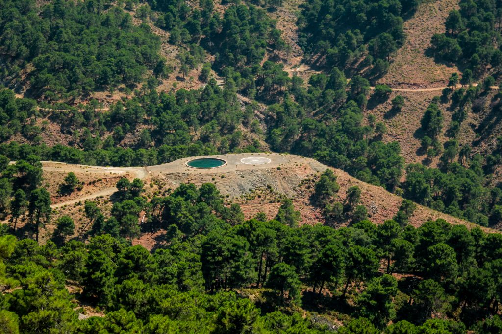 Ja katsokaapa tuonne metsän syvyyksiin, jollain on siellä oma helikopterikenttä. Ihan kuin jonkun James Bondin vihollisen salainen vuoristokartano.