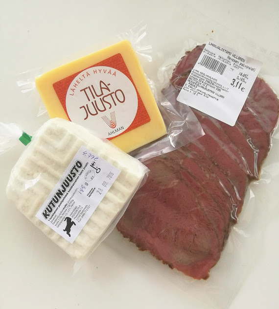 Kapustan vieressä on myös Ahlmanin tilapuoti, jossa myydään esimerkiksi juustoja, leikkeleitä, leivonnaisia, munia, vihanneksia, jauhoja, ryynejä ja hunajaa. Nyt mukaan tarttui mieto kutunjuusto ja voimakkaampi tilajuusto. Hyvännäköinen hevosenpalvikin oli niin nätisti tyrkyllä kassan vieressä, että lankesin. Kun joskus ostan leikkeleitä, ostan mieluiten pienen määrän todella hyvää lihaa lähituottajalta kuin bulkkikeittokinkkua.
