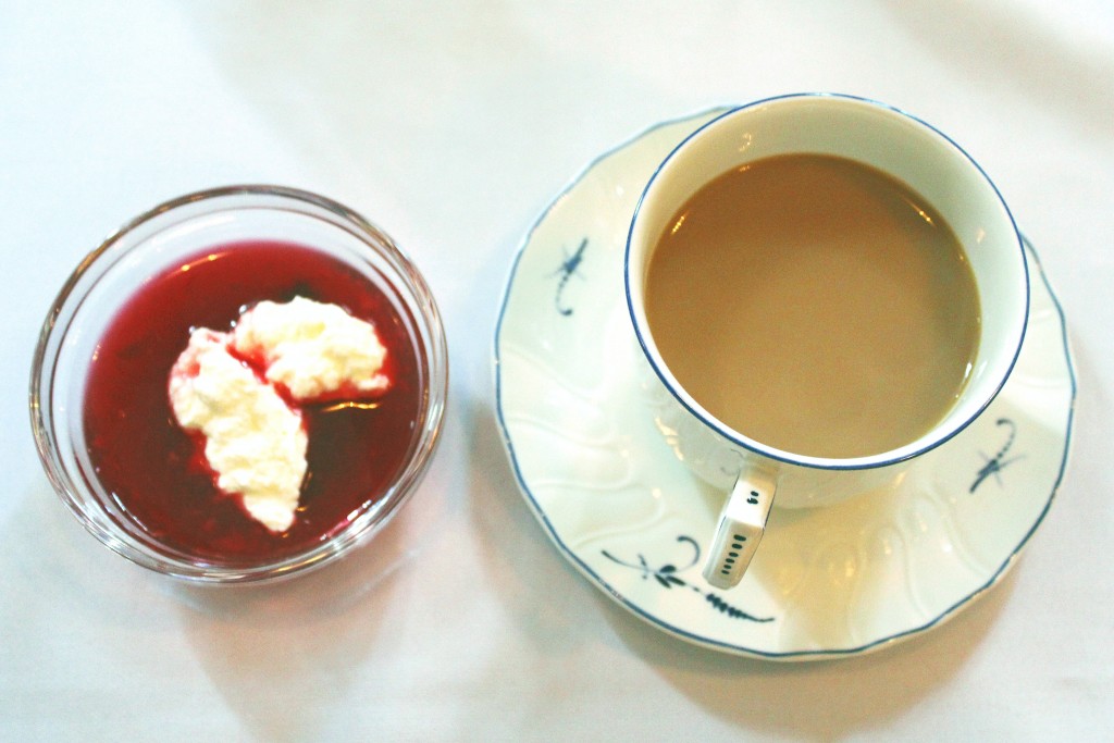 Jos kahvin lisukkeeksi olisi ollut maidon lisäksi tarjolla myös kermaa, aikamatka olisi ollut täydellinen. Jostain syystä laitan usein kahvilassa kahviin kermaa, vaikka en voisi kuvitellakaan tekeväni niin kotona. Etenkin vanhanaikaisissa paikoissa haluan aina kermaa.