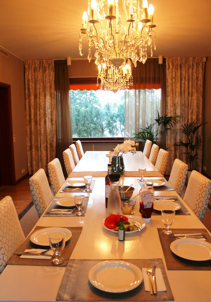 Klubilla voi tilata kolmen ruokalajin lounaan, ja pelkkä menun lukeminen saa minut kuolaamaan. Päädyimme buffetiin, joka kustantaa 17,50 euroa. Lapset syövät puoleen hintaan, ja taaperomme söi nimellisellä summalla tai peräti ilmaiseksi. En ole ihan varma, koska en ollut maksunaisena. Edellisenä päivänä kokeilemamme Myllyrannan buffet oli ihan kiva, mutta pöydässä oli pientä ontumista. Tyyliin höyrytettyjä, melko mauttomia babyporkkanoita ja omituinen majoneesissa uiva seiti. Ei lounas kuitenkaan huono ollut, riistalihapullista tykättiin ja italialaisessa alkukeitossa oli kunnolla valkosipulia.