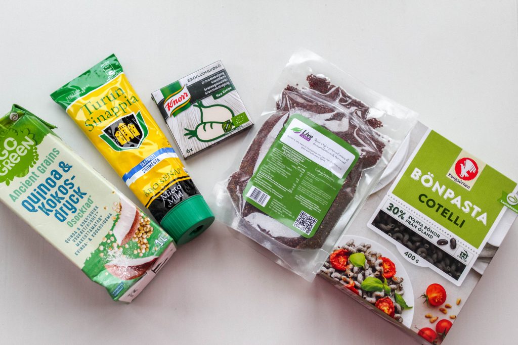 Tilasin Matsmartista 11 kiloa erilaisia säilykkeitä, kuiva-aineita ja hygieniatuotteita. 7 euron postimaksuineen tilaus maksoi 30 euroa. Tilasin esimerkiksi pastaa, kvinoaa, pestoa, suklaata, maustekastikkeita, pesuaineita ja suihkusaippuaa. Kaikki oli priimaa. Miinusta vain siitä, että yhden shampoopullon korkki oli auennut paketissa.