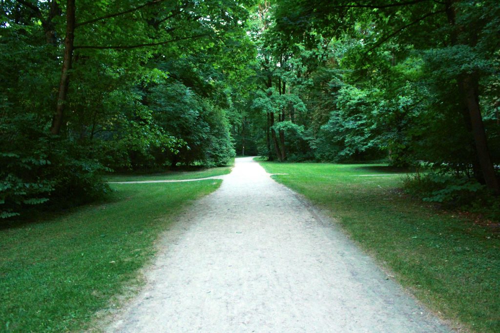Päätimme kävellä vähän pidemmän reitin kautta metropysäkille, koska hämärtyvässä metsässä oli satumainen tunnelma. Oli hiljaista, vehreää, viileää, kosteaa ja mullantuoksuista. Absurdia. Aivan kuin olisin palannut jotain kinttupolkua pitkin kotiin juhannustansseista, vaikka olimme miljoonakaupungissa. München vaikuttaa loistavalta paikalta luonto- ja urheiluihmiselle. Englischer Garten on täynnä sporttimahdollisuuksia, ja vain kivenheiton päässä kaupungista länsipuolella on suuri luonnonpuisto.
