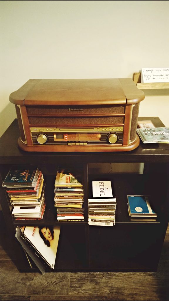 Eniten nautin Mimosan tunnelmasta. Kahvila on kiva sekoitus koruttomuutta ja hassuttelua. Pöydiltä löytyy aikuisten värityskirjoja, takanurkassa on vanha radio ja kasa levyjä, hyllyssä kirjoja (ja Seiskoja, JEEEEE!!!!), seinillä vaihtuvaa taidetta.