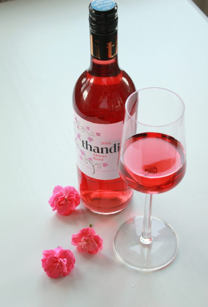 Thandi ei ole sykähdyttävin maistamani rosee, mutta oivallinen kesäviini, joka pääsee oikeuksiinsa ruokapöydässä. Maistelin Thandin kanssa noita kuvissa näkyviä marjoja, hedelmiä ja Cheddaria. Etenkin kirsikka ja persikka täydensivät viiniä mainiosti. Tarjoaisin tätä kesäisessä buffet-pöydässä, jossa on pikkusuolaista, salaatteja, kasvisruokia ja makeaa. Toimii myös pizzaviininä.